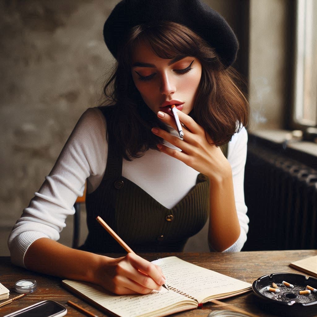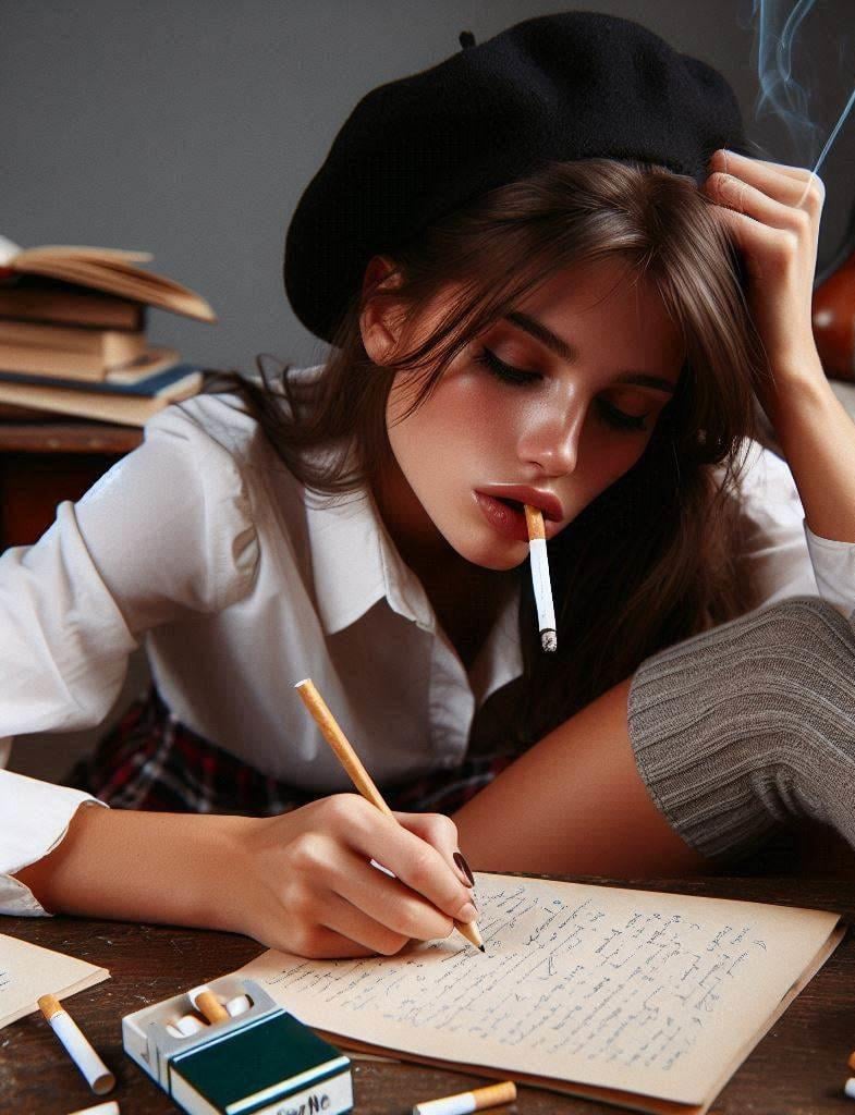 With each page I turned, I reached for a cigarette, the ritual of lighting it becoming almost second nature. The smoke curled and danced in the air, creating a hazy atmosphere that seemed to fuel my concentration.